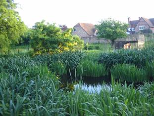 A series of ponds occupy the edge of the common just past this house, the largest being over a quarter of an acre. As at Prestwood, the common is used by surrounding inhabitants to pasture and water stock, whose trampling keeps the pond-edges bare, allowing an unusual plant, starfruit, to grow here. It is undrained heathy land on unproductive clay-with-flints, with extensive heather and gorse. To the west of these ponds, set back where a track, Hatches Lane, funnels into the common, is the old Hatches Farm, surrounded by pasture.