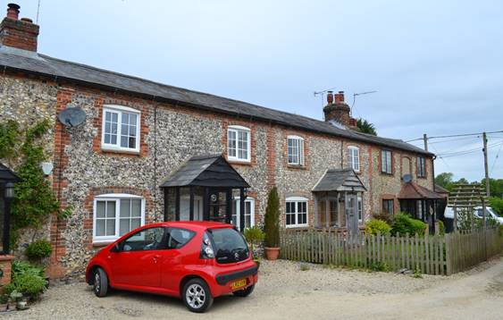The next set of new cottages is closer to the road again. The first adjoining pair used to be occupied, ten years ago, by the blacksmith family, the Pages, whom we met a short while ago. They are now occupied by two labourers’ families – Richard Montague (1780) and Mary, who have two married children living locally and a son William (1827) who is a farm servant at Hoppers Farm; and Charles Pearce (1805) with his wife Elizabeth (née Nash) and three children at home, eldest son Isaac (1831) being a farm servant at Atkins Farm, and the next two eldest, James and Elizabeth, lodging with their uncles William and James Nash in Prestwood.
