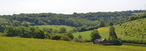 Longfield Wood from the north-west. The buildings are Stonygreen Farm.