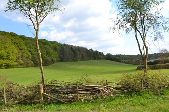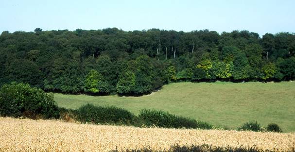 Clay Markins Wood (with the older Nanfan Wood clearly separated behind) with Middle and Long Markens fields below