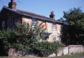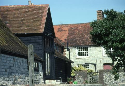 Dennerhill Farm dates back to 1670, although altered in the next century and extended around about 1800. It was built on an L-plan, the front wing of flint with brick and an old brick chimney, the rear wing, built last, of Denner Hill stone. The rear wing has doors to coal- and wood-sheds on one side and to the farmyard on the other, and contains stable bays, harness room, chaff store and loft. Adjoining barns were built in 1803 and 1804, also of Denner Hill stone, providing a total of nine bays.
