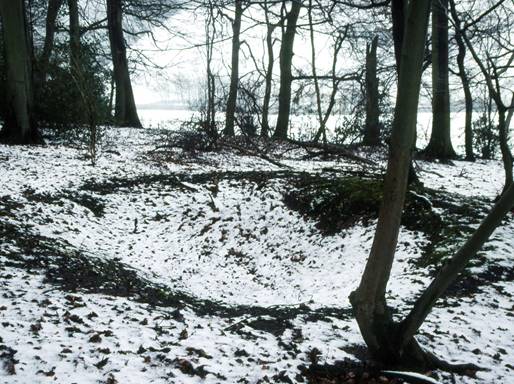 The outlines of an old saw-pit in Piggotts Wood show up well in the snow [2004]